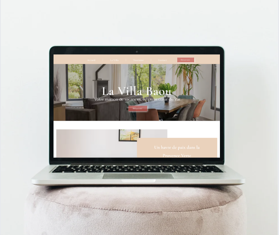 Ensemble nous avons construit un site vitrine sobre, moderne et élégant pour présenter la maison, la région et donner envie de réserver un séjour à La Villa Baou.